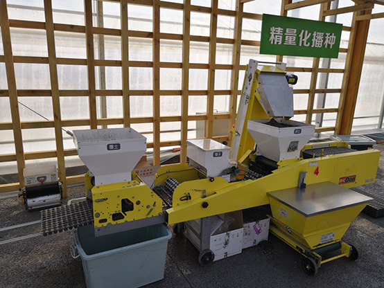 2 | 播種 | 人工移動播種,種子漫撒,不均勻,效率低 | 精量化播種使用專利苗盤技術,保證了每個穴孔精準播入三粒丸粒化包衣種子,每個苗盤上共載有660粒包衣種子,育種速度在3960~6600粒/分鐘(6-10盤/分鐘),可實現人工難以實現的每畝均勻播種3萬株蔥苗。 |