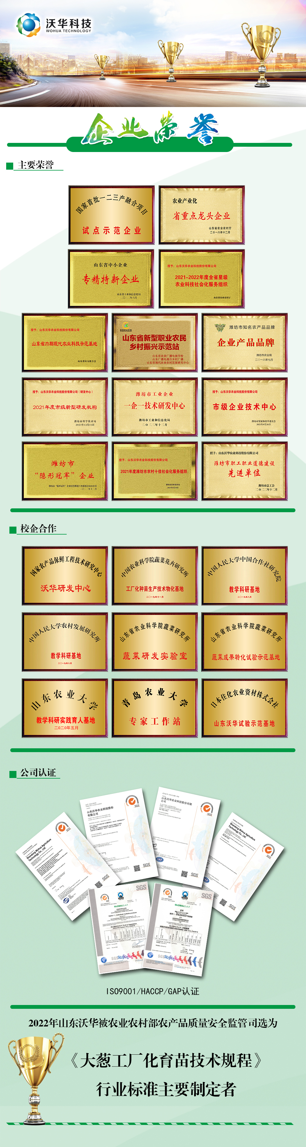 公司逐步成長為國家首批一二三產融合項目試點示范企業、國家高標準農田創新模式試點企業以及山東省農業產業化重點龍頭企業。