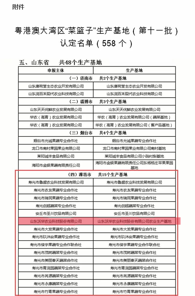 喜讯!粤港澳大湾区“菜篮子”生产基地(第十一批)认定名单公布,沃华科技农业生产基地榜上有名!